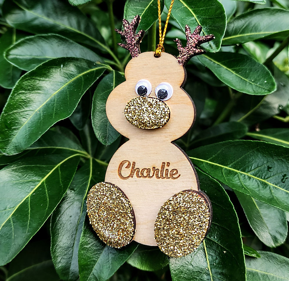 Personalised Wooden Christmas Reindeer With Name Pendant